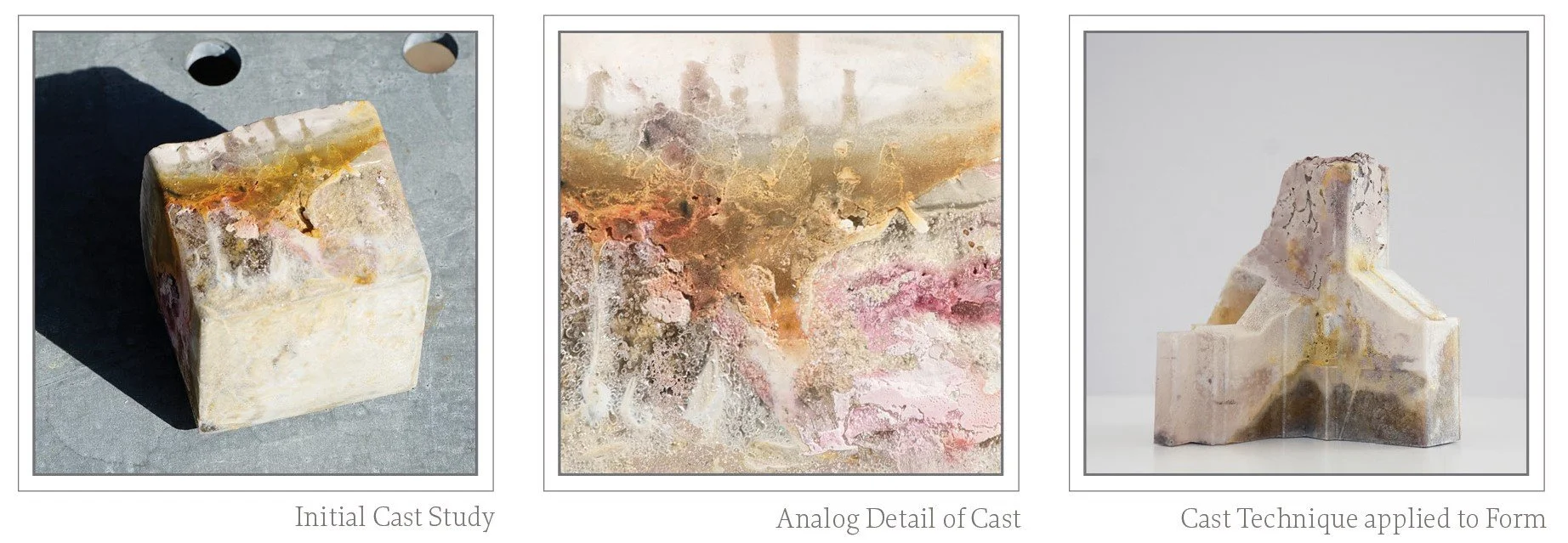 Located in Downtown Brooklyn, Farragut is a public housing facility funded by the New York City Housing Authority. In response to existing site conditions and the multi-generational care that exists between current residents, this project spatially and programmatically proposes a forward-thinking economic model that prioritizes a culture of care through three scalar interventions that alleviate dependence and encourage communal exchange through food. Materiality sits at the forefront of this proposal. Initial analog studies done with plastic and concrete fundamentally shape core underpinnings of the overall design and inform speculative spatial, structural, and programmatic solutions. Drawing from the interactions and blurred thresholds of these material blends, this project proposes a model that promotes support and interaction literally from the ground up. These scalar interventions include estate, courtyard, and building - all of which intervene at their own autonomous scale and integrate to form a unique response to the need for site densification and spatial cultivation. Combining both tower and bar typologies, the formal intervention at the building scale abides by the original pinwheel form of the existing buildings, yet introduces new means of circulation and visual connectivity between varying scalar interventions.